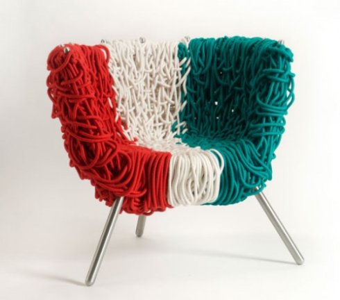 Campanarothers設(shè)計的椅子,取名為italiaride,據(jù)說,這個椅子只用4天時間完成,其中使用了500平方米的丙烯酸和自然棉繩米而成。整個設(shè)計看起來很隨意。~2009年的12月16—18日在米蘭的vermelha現(xiàn)場表演如何制作此椅子。