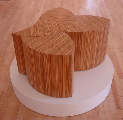 設計師ChristopherAtwood設計的這款拼裝的木桌子“EluribuUnum”在Post-Secondary/TablecategoryitheFreshWoodtudentCompetitioattheAWF比賽中贏得第一名。它的靈活組合及復合膠合板的表面,為它帶來了生命力一樣。