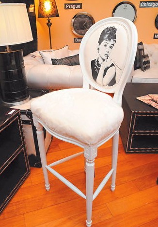 赫本的畫像在椅背上,你會(huì)不會(huì)食欲大開呢?