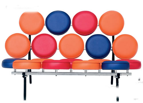 棉花糖沙發(fā)“Marshmallowofa”是在1956年推出的,這個(gè)設(shè)計(jì)用18個(gè)獨(dú)立的圓形軟墊組成座椅和靠背,“漂浮”在沙發(fā)框上。軟墊的拆卸十分方便,可輕松完成保潔工作,并可交換各個(gè)軟墊的位置以保持均勻的使用度,還可選擇軟墊的顏色,組合出全新的外觀,因此很富于游戲感。米勒公司在推出這款產(chǎn)品的時(shí)候,說這個(gè)沙發(fā)是“第一款孕育著全新軟椅概念的產(chǎn)品。我們覺得它不僅可以在家里使用,而且可以在與前者環(huán)境迥異的公共大廳內(nèi)使用,它與眾不同的外觀無疑是公共場合的一道風(fēng)景線。”我第一次看見這款沙發(fā)就是在一個(gè)候機(jī)室的商務(wù)艙接待廳,很吸引我的注意,看起來有點(diǎn)古怪,但是坐上去的確很舒服,而且是意外的舒適。