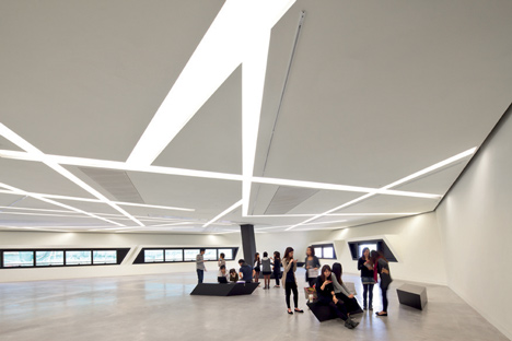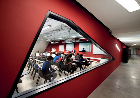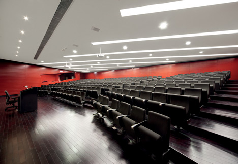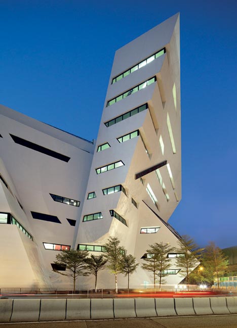 這是由美國建筑師丹尼爾?里伯斯金完成的一個位于香港城市大學的媒體中心,它包括實驗室,劇院和為學校電腦工程和媒體技術系準備的教室。與里伯斯金別的設計相似,建筑中心不同平面的體量向上聚集,形成頂部的尖頂。光滑的玻璃部分包圍建筑的外墻,同時它還形成室內(nèi)天花板上的透明光條。媒體中心預計在2011年十月份正式開放。