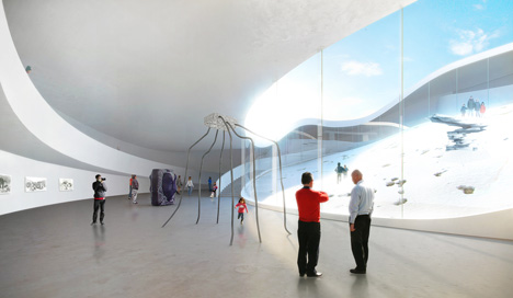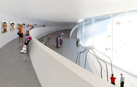 這是由BIG設(shè)計(jì)的格陵蘭島新國家美術(shù)館,它位于一個(gè)陡峭的山坡上,鳥瞰格陵蘭島美麗的峽灣。這個(gè)占地3000平方米的國家美術(shù)館將以一種動感的方式來展示國家的歷史和現(xiàn)代藝術(shù)。設(shè)計(jì)獲得評委會的一致好評,他們認(rèn)為這件作品能夠激發(fā)人們的好奇心和興趣,通過發(fā)人深省的設(shè)計(jì)使人們獲得一種歸屬感。