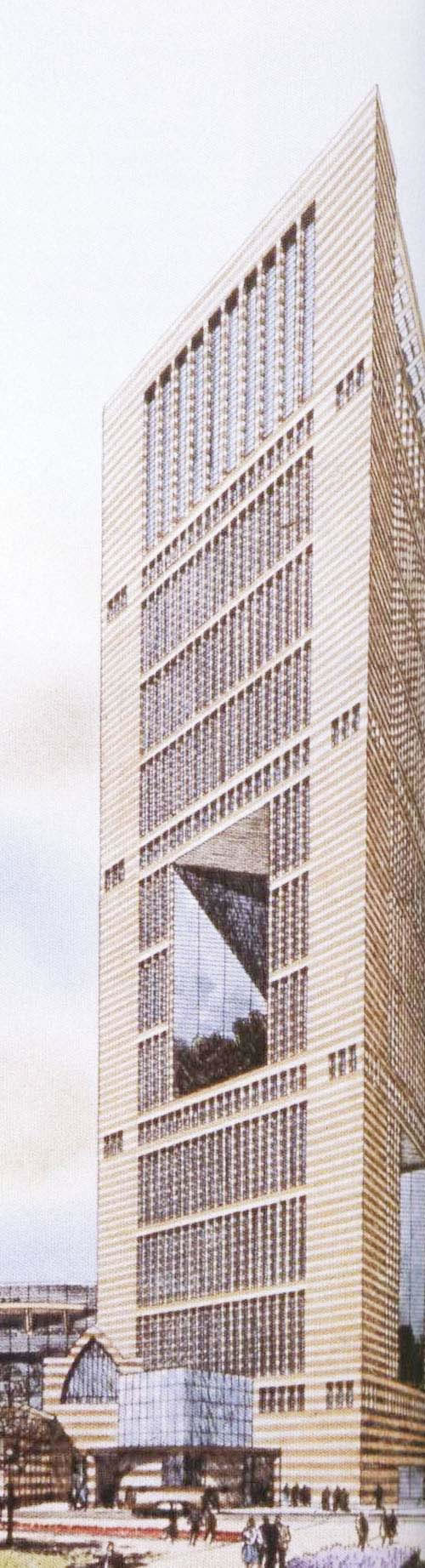 SOM建筑設計事務所是美國最大的建筑師-工程師事務所之一。1936年,L.斯基德莫爾(Louis Skidmore)和J.O.梅里爾(John O.Merrill)在芝加哥開始合作,1939年 N.奧因斯(Natha-niel Owings)加入,事務所按三人的姓氏的第一個字母取名為SOM。斯基德莫爾是一位思想敏銳的設計師,梅里爾是工程師,奧因斯則是一位組織者。對于每一個重大項目,這三位合作者中有一人負責同業主打交道,一人負責具體事務,一人負責選擇和支持設計師做出盡可能完善的設計,而對設計過程盡量不加干預。