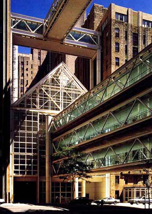 SOM在 60年代設計的辦公樓大都是直上直下、不加裝飾的各式高層框架。 如 60層的紐約大通曼哈頓銀行、52層的休斯敦貝殼廣場大廈、紐約美國鋼鐵公司等。而晚些時候芝加哥的100層約翰· 漢考克大廈(1970)和110層西爾斯大廈(1974)都是非常別致的超高層建筑。約翰·漢考克大廈上小下大,斜撐外露,屋頂豎有高106米的兩層電視塔;每平方米耗鋼量為 145千克,相當于一般傳統框架結構40~50層塔式建筑的用鋼量。 SOM其他著名作品很多,如比利時布魯塞爾的朗伯特銀行、沙特阿拉伯吉達新國際機場以及美國許多大學校園和一些工廠實驗室等。