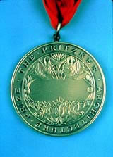 Pritzker建筑獎(jiǎng)在許多程序上以及獎(jiǎng)金方面參照了諾貝爾獎(jiǎng)。Pritzker建筑獎(jiǎng)的獲獎(jiǎng)?wù)呖梢缘玫?0萬(wàn)美元的獎(jiǎng)金,一個(gè)正式的獲獎(jiǎng)證書(shū),1987年以后還增加了一塊銅質(zhì)獎(jiǎng)?wù)隆#ㄔ谶@之前為每位獲獎(jiǎng)?wù)哳C發(fā)的是一座限量制版的亨利.摩爾的雕塑。)獎(jiǎng)?wù)抡鎴D案的設(shè)計(jì)是以有“摩天樓之父”美稱的芝加哥著名建筑師Louis Sullivan(沙里文)的設(shè)計(jì)為基礎(chǔ),刻有“The Pritzker Architecture Prize”(Pritzker建筑獎(jiǎng))字樣,獲獎(jiǎng)?wù)叩男彰淘讵?jiǎng)?wù)抡校?jiǎng)?wù)卤趁婵讨嗬?沃頓1624年在其《建筑的要素》一書(shū)中提出的建筑的三個(gè)基本條件:“堅(jiān)固、實(shí)用、愉悅”。