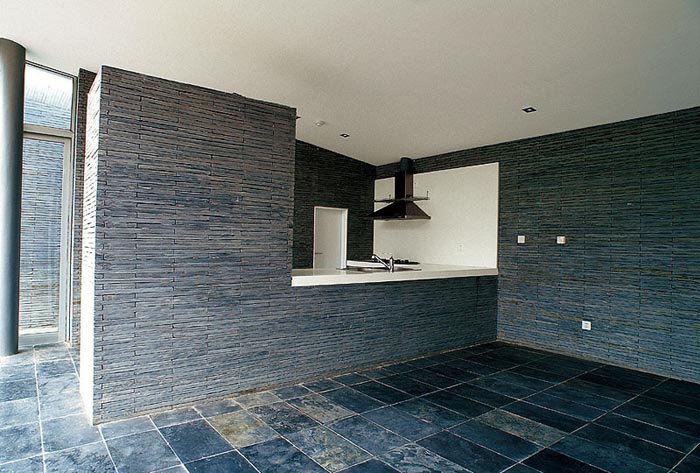 客廳部分下沉一米多,挖出的土方可以就地用作平整庭院和屋頂覆土,不需外運。如遇巖層凸現,可將之作為客廳室內家具和陳設,稍事雕琢。