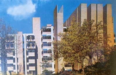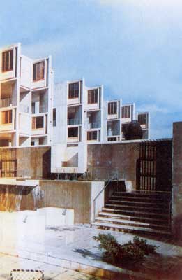康作為一個建筑家是成功的,在建筑行業擁有無比崇高的聲譽,然而,作為開業建筑師的康的命運卻很悲慘。學校畢業后的前3O年,他的生活是一段并不令人羨慕的苦苦奮斗經歷。他的成名作是耶魯大學藝術畫廊的擴建項目,在此之前,沒有多少重要作品問世。藝術畫廊這個項目是既照顧歷史環境,又竭力求新的二元做法,是傳統與現代的交織,在這種交織的過程中,康從幼年起蓄積的文化素養終于迸發出異彩。雖說建筑學是老人的職業,但象康這樣年過半百才脫穎而出的也很少見。成名后的康本可以利用自己的聲名和當時現代運動改道轉轍的時機,給自己掙來更多的業務,名利雙收。然而,他卻仍然十分認真地對待每個設計,有時甚至顯得遲緩,以致失去不少機會,并使他的小事務所難以維系。在他死后,事務所債臺高筑,瀕臨破產的邊緣。