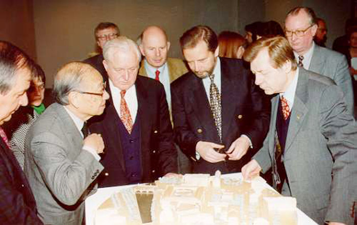 然而貝聿銘自60年代以來已不再參加任何項(xiàng)目的競標(biāo),而且在1990年底宣布退休離開他的設(shè)計(jì)公司(Pei, Cobb, Freed & Partners)后只是有選擇地接受極少的項(xiàng)目。按德國建筑師協(xié)會(huì)的規(guī)定,凡公共建筑的設(shè)計(jì)委托必須通過競標(biāo)方式甄選建筑師。基于貝聿銘不愿參加競標(biāo)和只接受自己選擇的項(xiàng)目的態(tài)度,德國當(dāng)時(shí)的總理赫爾穆特·科爾(Helmut Kohl)打算效仿法國總統(tǒng)弗朗西斯·密特朗(Fran?ois Mitterrand)在決定盧浮宮計(jì)劃時(shí)不執(zhí)行1977年以來重大工程應(yīng)舉辦競標(biāo)的規(guī)定,而破例直接委托給貝聿銘的做法。1995年5月當(dāng)?shù)聡鴼v史博物館方面第一次向貝聿銘詢問,是否能在柏林為德國歷史博物館設(shè)計(jì)一座新館時(shí),貝聿銘表現(xiàn)出極大的興趣,但有保留地未予答應(yīng)。當(dāng)年秋季貝聿銘被安排在波恩的總理府同科爾總理見面。兩人談?wù)撝率锥及亓值膯栴},首都的角色,文化在世界政治中的角色。最后科爾總理出人意料地拉開一個(gè)抽屜,里面是一架折疊式電唱機(jī),會(huì)面在一曲莫扎特的賦格曲中結(jié)束。一個(gè)極少有的令人難以想象的場(chǎng)景,但這時(shí)人們可以感覺到他們兩人已達(dá)成了默契。