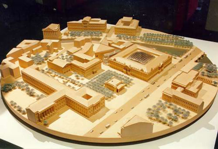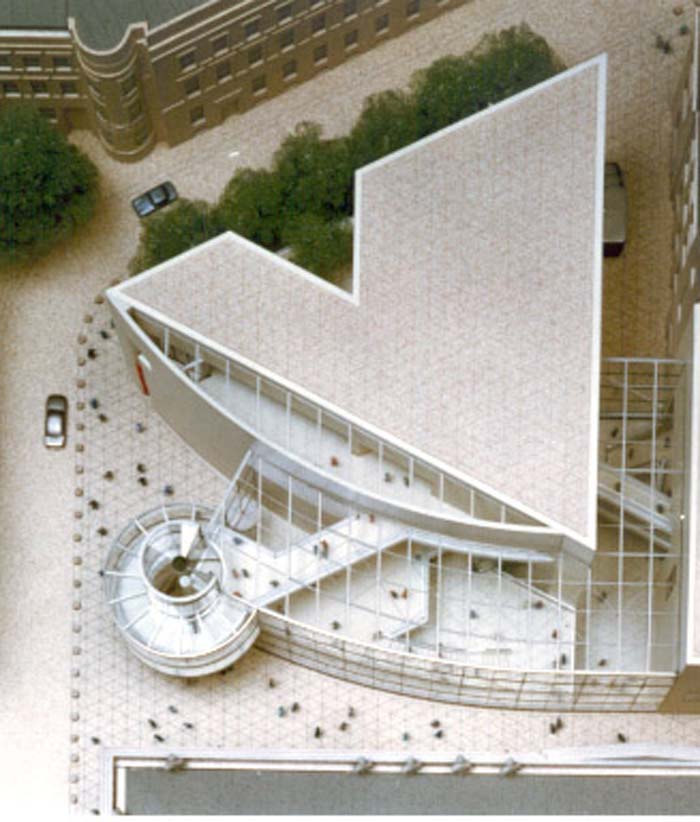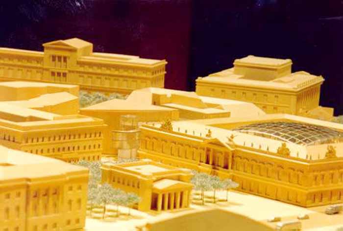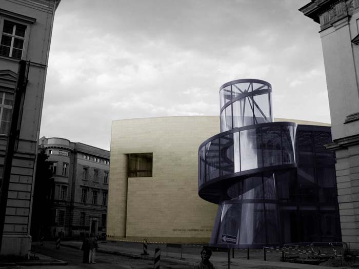 1988年6月米蘭的建筑師阿爾多·羅西(Aldo Rossi, 1931-1997)的設(shè)計(jì)一舉中標(biāo)。但接踵而來的一系列事件,如1989年11月柏林墻被拆除,1990年10月東西德重新統(tǒng)一以及1991年遷都的決定作出等,使得新建歷史博物館的計(jì)劃擱淺。1992年羅西規(guī)劃設(shè)計(jì)的歷史博物館原址也被視為不合適,因?yàn)槟莾簩⒁ㄔ煨碌牡聡偫砀?/P>