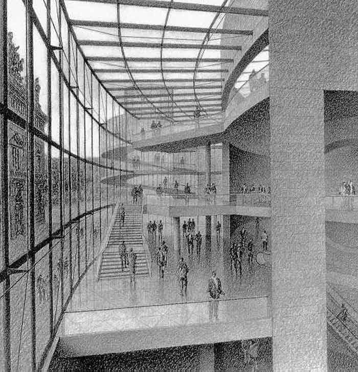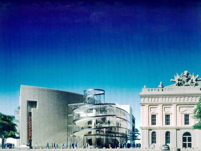 它要將巴洛克式的古典建筑風(fēng)格同現(xiàn)代建筑風(fēng)格相結(jié)合,從而表現(xiàn)出歷史與未來的結(jié)合。