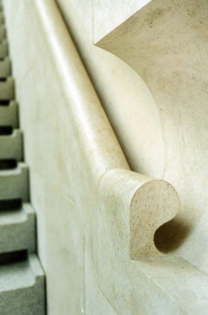 [page]在按照設(shè)計(jì)方案的實(shí)施過程中貝聿銘對(duì)材料的質(zhì)量,加工和建造都提出了極高的要求。這些貝聿銘對(duì)美學(xué)的高要求給項(xiàng)目的合作者,專業(yè)規(guī)劃人員,建筑管理人士以及實(shí)施建造的建筑公司以很大的壓力,但這些精確的建造要求和嚴(yán)格的材料選擇正是貝聿銘創(chuàng)造出杰出作品的秘密所在。在建造過程中也常常有許多技術(shù)方面的,人員和政治方面的困難和阻礙要克服。甚至有時(shí)情況到了幾乎找不到解決辦法,項(xiàng)目面臨落空的令人擔(dān)憂的局面。只是在所有項(xiàng)目的參與者齊心合力和堅(jiān)定不渝的努力下,才使新館的建設(shè)大功告成。在一次采訪中貝聿銘被問到,在項(xiàng)目完成時(shí)什么對(duì)他來說是最美好的。貝聿銘回答道:“對(duì)那些克服種種阻礙的建造過程,對(duì)我所面臨過的所有困難和對(duì)那些在這當(dāng)中我所得到的各種人士的幫助,尤其是我的項(xiàng)目合作者和委托人的回憶常常是我最大的享受。”對(duì)于貝聿銘來說,那些同建筑委托人進(jìn)行深入的討論是對(duì)建筑取得成功的極為重要的和起決定性作用的因素。