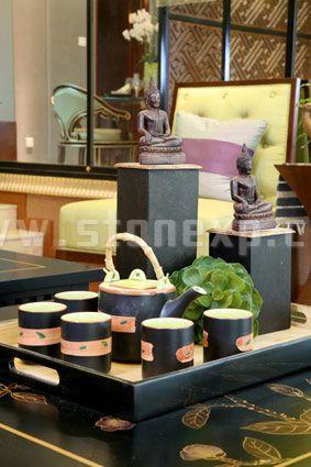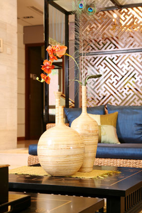 運用了泰式風格常見的佛手、木雕、藤器、羽毛,發揮到了極致。