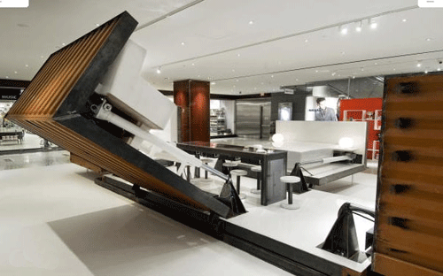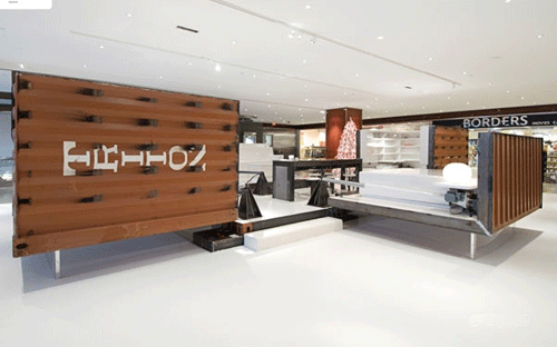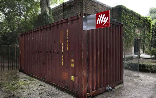 由Adam Kalkin設計的“按鈕房子”,被意大利時尚品牌illy咖啡制作成了集裝箱咖啡廳。從11月29 -0 7年1 2月2 9日,陳列在紐約市的時代華納中心。該illy按鈕房子是一個建在工業集裝箱里的全功能的和可持續的家,只消一按按鈕,90秒內就象變花樣一樣,就會從一個緊湊型貨柜進入一個裝修全面和功能優越的空間,包括廚房、餐廳、浴室、臥室、起居室和圖書館。這種房子能夠適應許多情況,以豪華住宅來滿足救災的房屋,以及商業推廣活動,如illy咖啡。