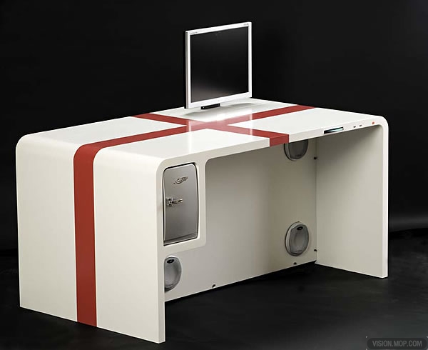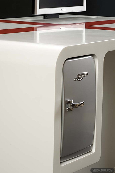 此外,功能桌內的PC配置完全可以安使用者自己的要求進行配置,在功能桌上還有一個光驅和兩個U接口,這樣,球迷們可以將球賽中精彩的片段保存下來,以便日后回味欣賞,還有,也是一個比較個性化的設計,就是在功能桌的左角邊,還設計了一個上型儲藏箱,里面只可以放飲料和面包等,而且這個儲藏箱可以根據季節(jié)不同,調節(jié)冷藏或加熱模式,邊享受美食邊享受足球,不能不說是一場完美的生活。