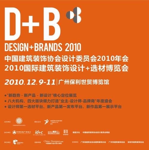 日前,建設部進行業務指導、擁有2萬余家直屬大型裝飾工程企業會員、統帥近2萬億元行業產值的權威協會組織——中國建筑裝飾協會宣布,將于2010年12月9至11日在廣州保利世貿博覽館由中國建筑裝飾協會設計委員會主辦 “2010國際建筑裝飾設計+選材博覽會”(Design+ Brands Fair 2010,簡稱D+B博覽會),中裝協設計委年會也將于2010年開始在此平臺上同期舉行。