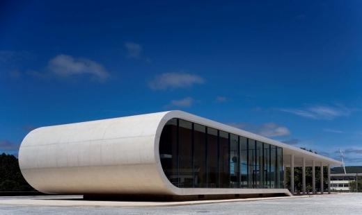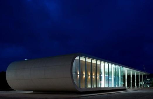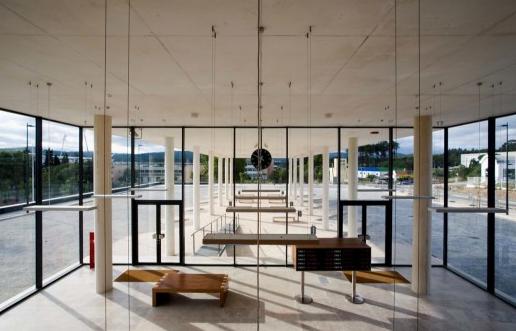 里奧馬歐公車站是城市規劃策略的一部分,受到交通系統設計策略和方案的不同影響。建筑被看成是到達里奧馬歐的第一站,也是離開此城市的人們的最后記憶。一個長長的片形的帶有高密度塑料的白色混凝土定義了整個方案,形成獨立的由白色板面包裹的軀體,它由兩層組成,形成服務區。建筑的透明性使人們在室內能夠享受到城市運動區的綠色結構。室外所有的環境都被倒影在包含著車站功能區的玻璃結構上。玻璃結構為建筑帶來一定的正式感,與混凝土的結構形成對比。