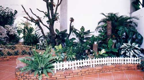 以綠化分隔空間的范圍是十分廣泛的,如在兩廳室之間、廳室與走道之間以及在某些大的廳室內(nèi)需要分隔成小空間的,如辦公室、餐廳、旅店大堂、展廳,此外在某些空間或場地的交界線,如室內(nèi)外之間、室內(nèi)地坪高差交界處等,都可用綠化進(jìn)行分隔。某些有空間分隔作用的圍欄,如柱廊之間的圍欄、臨水建筑的防護(hù)欄、多層圍廊的圍欄等,也均可以結(jié)合綠化加以分隔。如廣州花園酒店快餐室,就是用綠化分隔空間的一例。