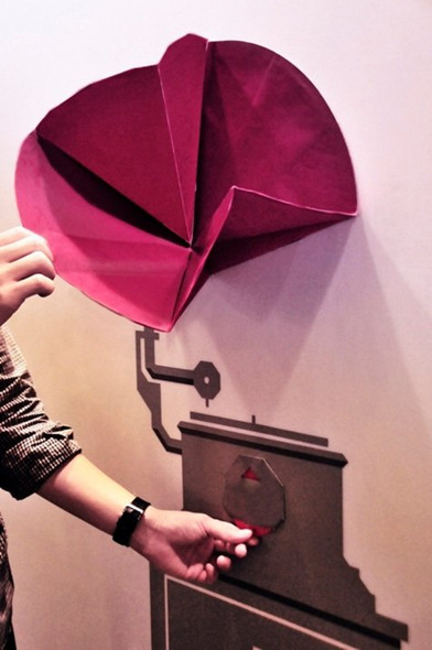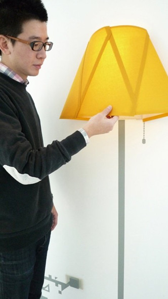 以古老的東方摺紙技藝,結(jié)合西方現(xiàn)代墻飾經(jīng)典,是一組完全不同于以往的壁貼。透過(guò)紙制燈罩、喇叭、瓶身的開(kāi)合,讓原本平面的墻飾有了立體的姿態(tài)。功能亦由隱至現(xiàn):紙燈罩一拉開(kāi)就亮,壓平則燈滅,秘訣就在于內(nèi)藏的LED薄膜; 摺疊喇叭更是神奇,是一款不折不扣的收音機(jī),可以調(diào)整頻道及音量; 當(dāng)香水瓶從平面變成立體,瞬間滿(mǎn)室馨香。