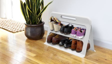 這款塑料鞋架采用“A”字型設(shè)計(jì),兩塊支撐板的角度還可以適當(dāng)調(diào)節(jié),以便適用于不同尺碼的鞋子。它還配有實(shí)用的提手,方便您快捷地移動(dòng)鞋架清潔地面。