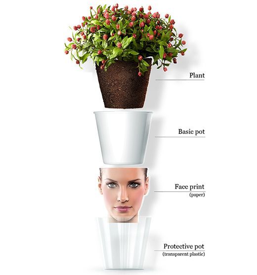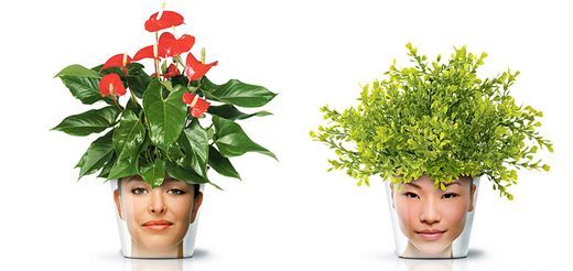哈薩克斯坦設(shè)計(jì)工作室good最近設(shè)計(jì)了一個(gè)“facepot”(人臉花盆), 這個(gè)設(shè)計(jì)搜集了一系列大大小小的花盆,并用人們的照片或圖片作為裝飾圖案。因?yàn)榛ㄅ枭细采w了人的頭像,盆栽中的植物就好像人們自然生長出來的頭發(fā)一樣。