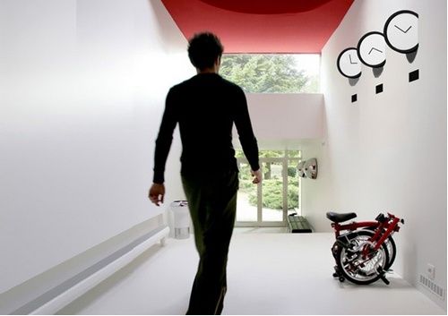 這些鐘表像小李飛刀的刀一樣深深地斜刺到墻壁里,視覺效果夠奇異,從單一方向來說,讀取時間也更方便(站到鐘表背后的就別看了)。當然這并不是真的把好端端的鐘表給塞到墻里去,只是設計師的小小把戲而已。