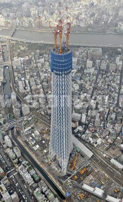 建造在東京都墨田區(Sumida Ward)的“東京天空樹”,在2011年末完工時,高度將達到634米。位于東京Minato Ward的無線電和電視發射塔“東京塔”(Tokyo Tower)的高度為333米,此前的52年為日本最高建筑。