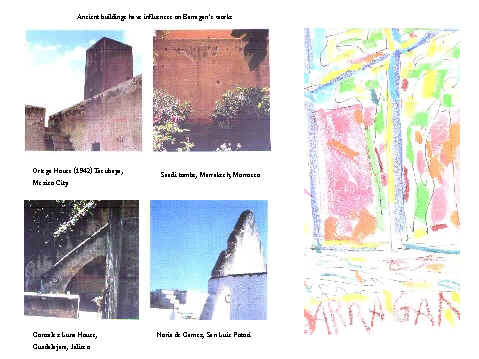 1925年離開墨西哥到歐洲旅行,并且在旅行時參加了柯布的演講會?;啬鞲缰?,他又拜訪了希臘 _____ 此時他迷戀上了一般集居住宅的質樸;到了西班牙,他找到他的理想 _____ 中古世紀西班牙首府格拉那達(Granada)附近摩爾族諸王的Alhmbra宮殿 , 圍墻內有無拘無束不對稱陳列的建筑及清泉飛濺的寂靜花園 。