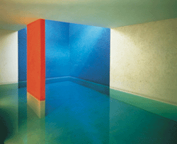 他的創作已被稱為極簡抽象派藝術,但其用色及組成依然大膽奢侈。純平面,灰泥磚墻,木材甚至是水,都是他創作的元素。