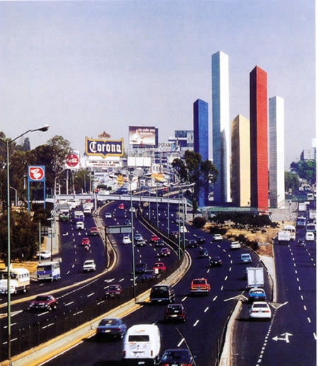 墨西哥城衛星城入口標志與一位藝術家合作設計