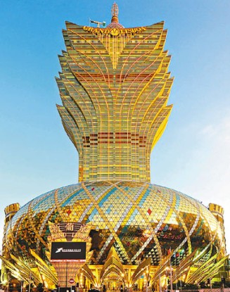 新葡京作為澳門唯一入選的建筑物,樓高258米,外形設計猶如一朵巨大的金蓮花(蓮花是澳門的區花);同時,大樓建筑設計的靈感亦源自跳舞女郎配戴的羽毛頭飾,活潑多姿,象征澳門旅游娛樂事業的興旺。新葡京底部的“萬象球”,以金蛋為造型,寓意吉祥好運;萬象球的表面由120萬粒液晶發光原體(LED)組成,晚上可顯示千變萬化的圖案和文字,散發繽紛迷人的色彩。