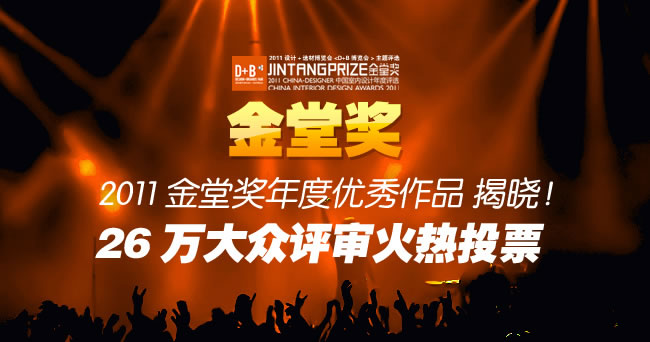 讓數千媒體人、百萬設計師、千萬業主翹首以盼的年度“設計創造價值”典范之作——金堂獎·2011CHINA-DESIGNER中國室內設計年度評選年度優秀作品名單在2011年10月10日重磅推出。經過由10位專家評委、10位業主評委、10位媒體評委共同組成的2011金堂獎評審委員會的評審,在2278套參評作品中共評選出384套2011年度優秀竣工項目“為百萬設計師吶喊,向千萬業主傳播!”