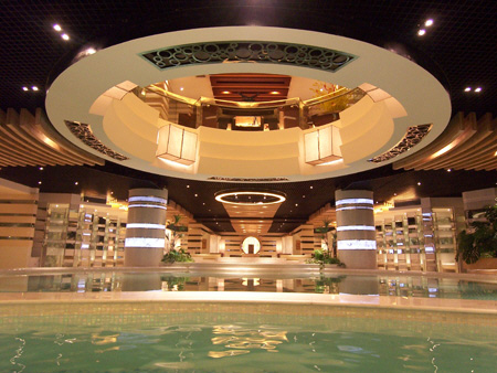 水池區采用大量的理石及馬塞克等材料,從而塑造出舒適與尊貴的高標準消費場所,作為商業性空間,本設計師更多地著意于營造輕松、快意舒緩與散漫的情調和人文氣息。