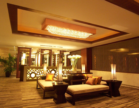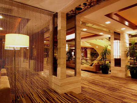 設計師運用建筑手法來營造自然景色的輪廓,在主題的表現上蘊涵著裝飾元素貫穿在空間之中,設計師用運“圓”作為主題,對該俱樂部強調“泡泡”的休閑,利用馬賽克、不銹鋼、石材等材質將“圓”的符號進行反復的擴展和重新編排,將擬象融入其中,設計師營造的環境在符合功能需求的情況下將配以博物館中展示的手法引入其中,選用柔和的點光源運用比較溫和的燈光設計,這樣的環境賦予整個空間一種豪華感,使顧客在輕松愉悅的心情下體會休閑俱樂部的細微服務。在風格的創造過程中,大堂及共享空間運用洞石的高雅色調使整體氣氛得到了渲染。