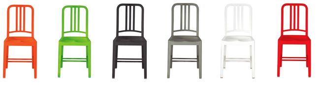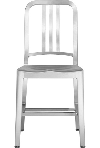 1940年代,參加二戰(zhàn)的美國(guó)海軍需要一批能在軍艦上使用的、結(jié)實(shí)程度達(dá)到能抗魚雷打擊的座椅,為此,Emeco的創(chuàng)始人WittoC."Bud"Dinges在美國(guó)鋁公司(Alcoa)專家團(tuán)隊(duì)的幫助下,設(shè)計(jì)了著名了1006號(hào)座椅,也即后來被譽(yù)為美國(guó)設(shè)計(jì)象征的海軍椅。海軍椅的結(jié)實(shí)程度超出了海軍總部的預(yù)期,在芝加哥的一次家具展上,Dinges將一把海軍椅從六層樓的窗戶中扔下,結(jié)果除了幾處小劃痕之外,整把椅子完好無損。經(jīng)歷了二戰(zhàn)風(fēng)云的海軍椅,絕大部分至今仍具備良好的使用功能。