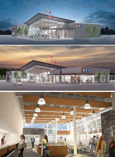 玻璃中庭成為內外部空間的視覺焦點。陡峭的邊角令人想起加拿大北部的巖石。節能玻璃窗的使用讓自然光照進入到顧客坐席區和內部區域,這樣白天就不需要過多的人工照明。夜晚,中庭的燈光成為一座燈塔,為旅行者指路。石質薄板墻模擬了傳統的安大略石質建筑,表明服務中心的設計回歸到安大略省的歷史根基。