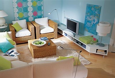 最能體現客廳清爽風格的色彩當然是各種各樣的藍色,仿佛在蛋清里攪拌過的柔嫩的藍色,變幻無窮,都是對客廳色彩的絕好演繹,且在視覺上有增大空間的感覺。