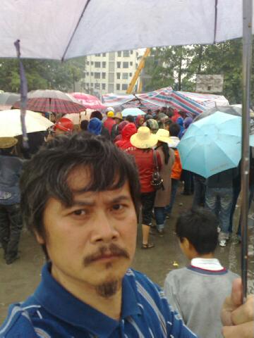 余靜贛先生在災(zāi)區(qū)現(xiàn)場(chǎng)與災(zāi)民在一起