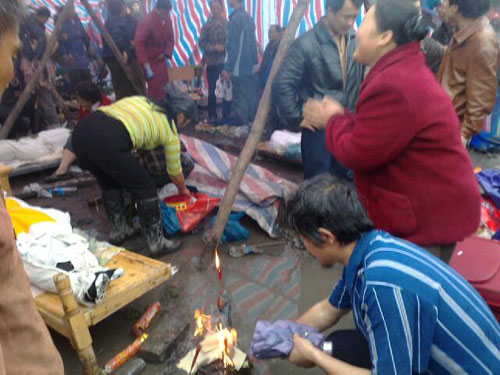 第五是各地的紅字會(huì)救援,大家都很快速。我看到的小分隊(duì)都是跑步進(jìn)行,從一個(gè)帳篷轉(zhuǎn)移到另一個(gè)帳篷。我想跟他們交流下問他們是從哪里來的,都沒有那個(gè)時(shí)間。我后來看到他的小藥箱下寫的是成都紅十字會(huì)。這些民間的救治很感人,像我們這些是自發(fā)去的,大家都很積極地齊心協(xié)力救助,這點(diǎn)說明我們的國人素質(zhì)越來越好,大家都在幫忙。