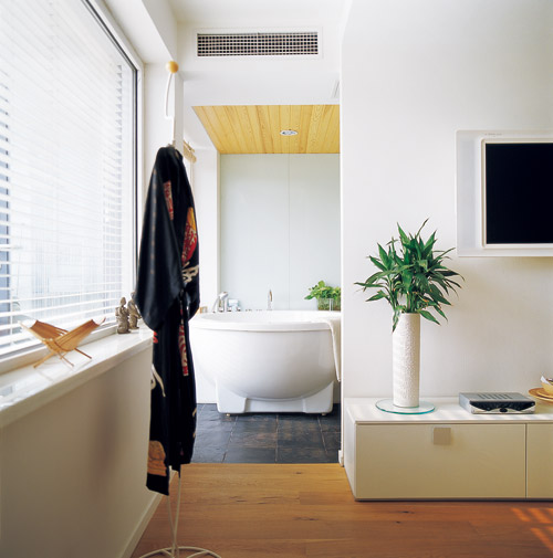 柯布西耶還說,建筑應帶來歡愉,而非最低限度的利用。在柯布西耶的建筑中存在一抹來自地中海的亮色,而非德國式的冷峻。在王泉寧靜的家里可以體會到幾許詩意,那是美麗生活升華后的光澤。二樓入口處的木墻壁上,掛著李勉麗大學時王泉給她拍的照片,清純恬靜而淡然。進入人生的穩健期,這對夫婦的從容更加反映在家的每個角落,花卉、開放式浴缸、陽光下的躺椅……