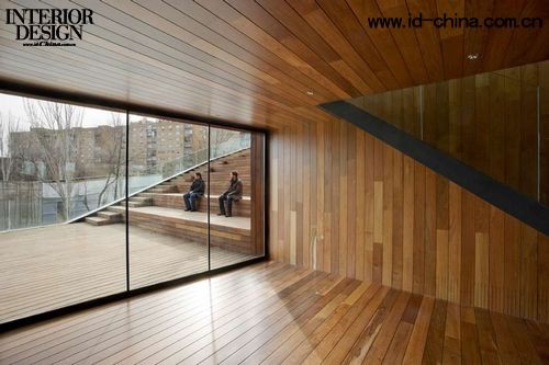基于建筑用地周圍階梯狀的自然地理特征,以及距離城市主干道與Ebro河畔的距離,考慮到建筑與周邊道路及自然景觀的合理銜接,Magfn Arquitectos將建筑入口設(shè)計(jì)在幾個(gè)不同的位置:主要入口設(shè)在二層,通過(guò)一架天橋直通城市主干道,并將滿足建筑主要功能的教室、行政辦公間等均安排在二層,建筑與城市和諧的同時(shí),也滿足了人與建筑功能和諧的需求。一層的功能主要用作貯藏、車輛停靠,其出入口與休閑廣場(chǎng)及河畔的小路連通。Magfn Arquitectos借用這樣一座含蓄低調(diào)的建筑,將大眾從鬧市中不動(dòng)聲色地引領(lǐng)到了河畔美景的自然風(fēng)光中。由一層房頂通向頂層的寬步臺(tái)階的處理,使其不但成為集會(huì)演說(shuō)的公共活動(dòng)空間,更是觀賞河畔美景的絕佳之地。