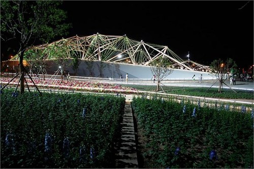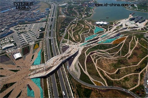 流動的花園,世園會中心區域,占地37公頃。在2009年的國際性開放競賽中,由plasma建筑事務所和Groundlab景觀事務所的合作設計博得頭籌,由此決定了流動花園的設計方案。從設計到最終建成僅用時兩年。設計因其將充滿活力并可持續發展的景觀與三大標志性建筑組織融和成一個完整的系統,并讓它們糅合于整體設計的邏輯,流動性的舞動中,所以卓爾不凡。
