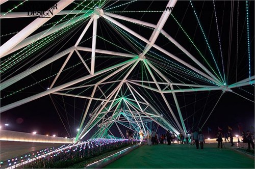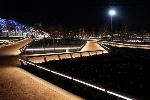 廣運門,作為入口陸橋,蓊郁的綠色植物在未來的幾年中將慢慢的爬滿其鋼制的張拉結構。過了廣運門橋,長安花谷映入眼簾。設計的創造性表現在,作為一個河口三角洲,它將自己鋪展到彎曲迂回的小道中,創造了一個將景觀,水系及道路融合在一起的復雜交錯的循環網絡。