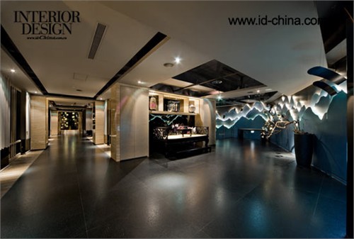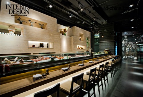 1F用餐區(qū)部分,空間挑高4米八的尺度,整體空間均用低彩度沉穩(wěn)色系營(yíng)造,為提供食客一進(jìn)門即感受一份寧?kù)o與舒適的用餐氛圍。設(shè)計(jì)上共布局3組型式(包廂區(qū)/板前料理區(qū)/散桌區(qū))以滿足不同人數(shù)與類型的食客用餐需求。 包廂區(qū)的設(shè)計(jì)上被層迭窄版分割的石材大墻包覆著,各包廂呈現(xiàn)連續(xù)性獨(dú)立的空間表現(xiàn)。板前料理區(qū) :日式料理的菜肴重點(diǎn)表現(xiàn)在食材的新鮮與精美,設(shè)計(jì)上特別規(guī)劃一區(qū)長(zhǎng)達(dá)10米桌長(zhǎng)之板前料理座臺(tái),除了臺(tái)面上可充分展現(xiàn)食材的豐富與新鮮度之外,更可讓食客直接感受料理師傅的精湛手藝。師傅工作臺(tái)后的背墻面,更為重點(diǎn)表現(xiàn)的藝術(shù)大墻,以米色洞石,明亮色系跳脫與周遭空間的不同之外,8米長(zhǎng)的石材大墻上巧妙塊體分割布局的展示洞與瀑布水墻上均可放置藝術(shù)品成列,讓食客于用餐的同時(shí),直接面對(duì)體驗(yàn)空間配合藝術(shù)品的變化性。 散桌區(qū)在1F主廊道的端點(diǎn),是26坪大的開(kāi)放空間,設(shè)計(jì)考慮是提供營(yíng)運(yùn)者一區(qū)可靈活調(diào)度運(yùn)用的場(chǎng)所,簡(jiǎn)單用一組整面的山型意象畫作光墻呈現(xiàn)空間的氣度性。另外成列低反射性鏡面的連續(xù)造型帶,表現(xiàn)空間的豐富感。
