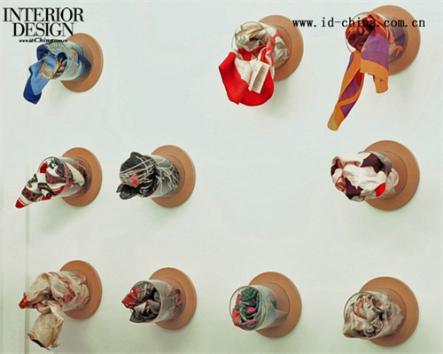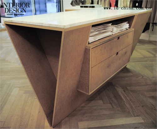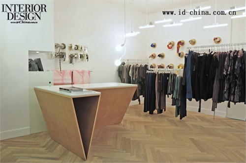 除去服飾,Rhus Ovata店內還經營各種配飾,其中不乏精致的古著物品。包袋吊掛在柱子上特別設計的立體菱形掛件上,每一個掛件都是手工制作,并且各不相同。絲巾則被折疊卷起,塞進圓筒形的裝置里,色彩斑斕,頗有趣味。其它的配飾物品放置在靠墻的方格架子上,配以各種古典風格的書籍和海報。收銀前臺設計成為倒立的三角形,以極不穩定的形式感出現在房間的角落。 K1p3 Architects于2000年Karina Tollman、AA diploma和Philipp Thomanek共同成立,位于以色列的Tel Aviv,提供完備的建筑、室內設計和家具產品設計的服務。