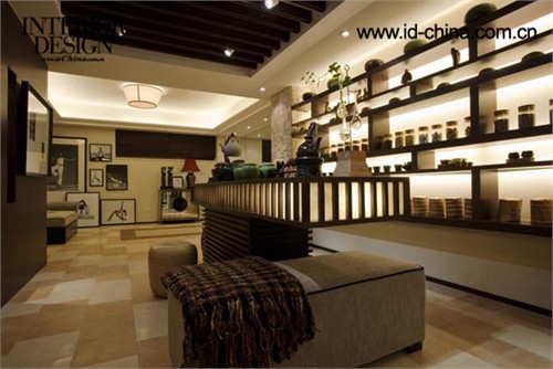 所謂禪茶一家,愛(ài)禪宗之人,必定對(duì)品茶相當(dāng)講究。地下室就為女主人這一愛(ài)好提供了施展之地。滿(mǎn)墻的實(shí)木置物架,整整齊齊的陳列著各式茶具以及原材料,色彩各異形態(tài)各異,卻因它們共同的功能而統(tǒng)一相聚在這,仿佛女主人在向來(lái)客敘述著茶藝文化:什么茶都能喝,什么事都可以面對(duì),人便可以在這樣繁復(fù)的社會(huì)找到屬于自己的自由,來(lái)客便可以在這樣的茶室這樣的空間找到屬于自己的寧?kù)o。傍邊的影音區(qū)最別致的地方莫過(guò)于兩把紅色的單人椅。在整個(gè)色彩素凈典雅的空間,何其鮮亮何其艷麗,一如蓬勃發(fā)展的中國(guó)經(jīng)濟(jì)又象征著熱情好客的東南亞人民。