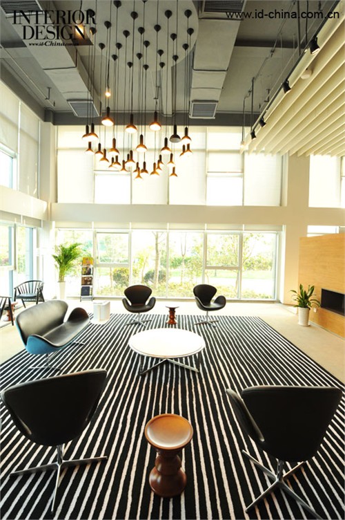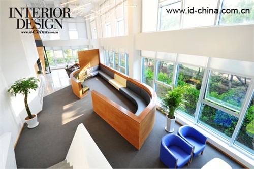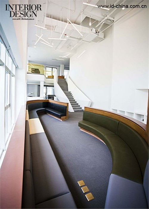 一樓大堂回形休閑區,用各種顏色拼成一圈沙發椅,搶眼又活潑,不僅可以招呼一大堆來賓,亦可作為員工休息區。在辦公室,難得有這樣一個窗口,工作累了時,可安靜欣賞屋外的滿園春色。相對獨立又便于溝通的辦公區域,用一些帶有未來設計感的幾何設計,巧妙地表現出來。有些時候,工作中的靈感,往往來源于周遭靈動的環境。