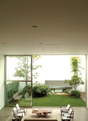 他希望能夠在城市邊緣,避開市中心無邊蔓延的摩天樓宇,尋找到一個平靜的地方作為自己的居住地,最后選定了Jardim Paulista地區,更幸運的是,他遇見了設計師Weinfeld,從頻頻拜訪到相談甚歡,他最終決定讓這位設計前輩為自己量身設計未來的家。 Weinfeld拆除了地面上原有的建筑,建起了一座只有一間起居室,兩間臥室,一間女仆臥房和一個小花園的簡單住宅。步入寬敞的起居室,空間挑高五米的天花板讓室內充分延續屋外的熱帶陽光,與庭院地面幾乎齊平的室內,幾乎感覺不到內外空間的劃分,庭院與起居室仿佛只是巨大落地窗隔開的兩個生活空間。而粉刷成冷色的墻面和保持原色的混凝土地面為整個居室增添了現代主義的簡潔情趣。