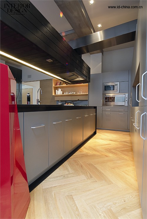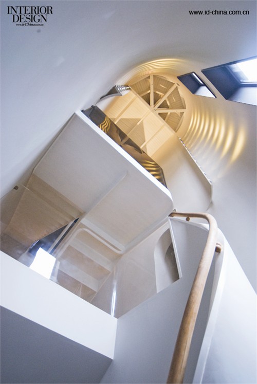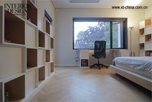 掃清基本障礙之后,下一步就是為別墅進行重新設計。方欽正以“CUBE 5”作為設計主題,打造出了 5 個功能不同的“盒子”:一樓面向花園的“玄關”大理石盒子,三樓主臥內黑鋼框架的巨大挑窗,花園里的水立方泳池,建筑正面的一個木盒子(臨街入口),以及院子里的一個樹屋。除了這 5 個有代表性的“盒子”之外,建筑內部還有許許多多的小盒子,比如兒童房內的方格書架、樓梯口為防止嬰兒爬行設置的“安全箱”等等。整個改造過程耗時兩年,其中包括長達 6 個月的構思和繪圖,接著是 8個月的建筑結構改造、6個月的室內裝修、2個月細節完善……經過改建的住宅不但室內面積大幅提升 (500平方米) , 功能性也增加了不少,如今的一樓作為客廳、廚房、餐廳的區域,二樓包括了兒童房、游戲房、客臥、洗手間、陽臺,三樓則容納了主臥、衣帽間、洗手間、桑拿房及陽臺等等。整個室內空間以白色為主,用老榆木地板搭配定制的橡木家具,同時也大量使用了直紋白石材。值得一說的是細節處的人性化設計,比如女主人的衣帽間巧妙地設計成圓形,營造出包圍感并且便于挑選;所有的電插座都被“埋”在墻內,插座蓋的設計延用直紋白石材既美觀又提高了安全性;二、三樓的陽臺均在邊緣植樹來保證私密性,從主臥的挑窗還可以隨時觀察到孩子們在樓下玩耍的場景。
