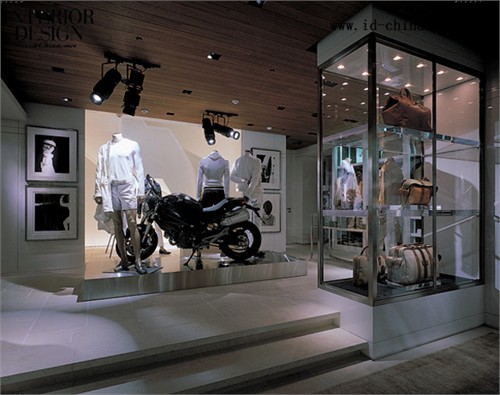 外立面看起來就像漂浮在玻璃店面之上,與之對接形成了一個無縫的外觀。厚厚的拉絲不銹鋼與上方的背光式櫻桃木天窗構成了天棚。店面玻璃后方的背光式櫻桃木天窗晚上便輕柔地發出由明到暗的光。