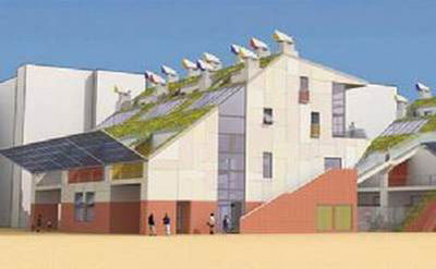 世博零碳館,是中國第一座零碳排放的公共建筑。從外形來看,零碳館更像是兩棟造型別致的“小別墅”,而不是展覽館。除了利用傳統的太陽能、風能實現能源‘自給自足’外,“零碳館”還將取用黃浦江水,利用水源熱泵作為房屋的天然“空調”;用餐后留下的剩飯剩菜,將被降解為生物質能,用于發電。在每棟房子的屋頂,各安裝著11 個五顏六色的風帽,房子朝南的墻壁采用的是鏤空設計以自然采光;而房子的北面墻壁則被設計為斜坡狀。在坡頂設置可開啟的太陽能光電板和熱電板,另外還將種上一種名叫“景天”的半肉質植物。“景天”不僅有助于防止冬天室內的熱量散失,而且還能使零碳館從周邊各展館中“脫穎而出”。世博會結束,零碳館將永遠保留下來,我們會把它打造成中國首座零碳博物館。 2. 臺灣成功大學&mdashmdash;綠色魔法學校